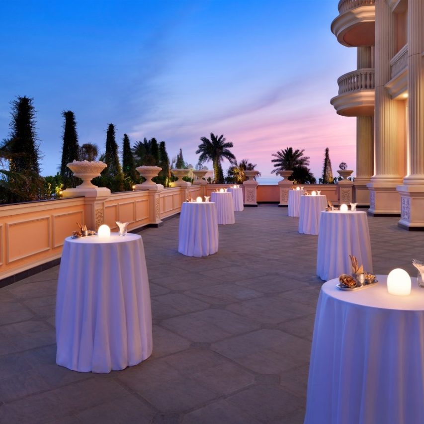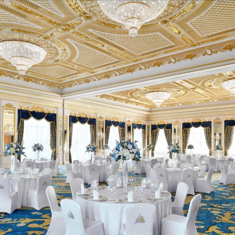 Raffles The Palm Dubai is situated on the West Crescent of Palm Jumeirah. Guests can enjoy one of the finest beaches, with breathtaking views of the Arabian Gulf and the Dubai skyline across The Palm. Raffles The Palm is 4 km from Aquaventure Waterpark, 18 km from Mall of the Emirates and 30 km from Burj Khalifa. Dubai International Airport is 40 km from the hotel.